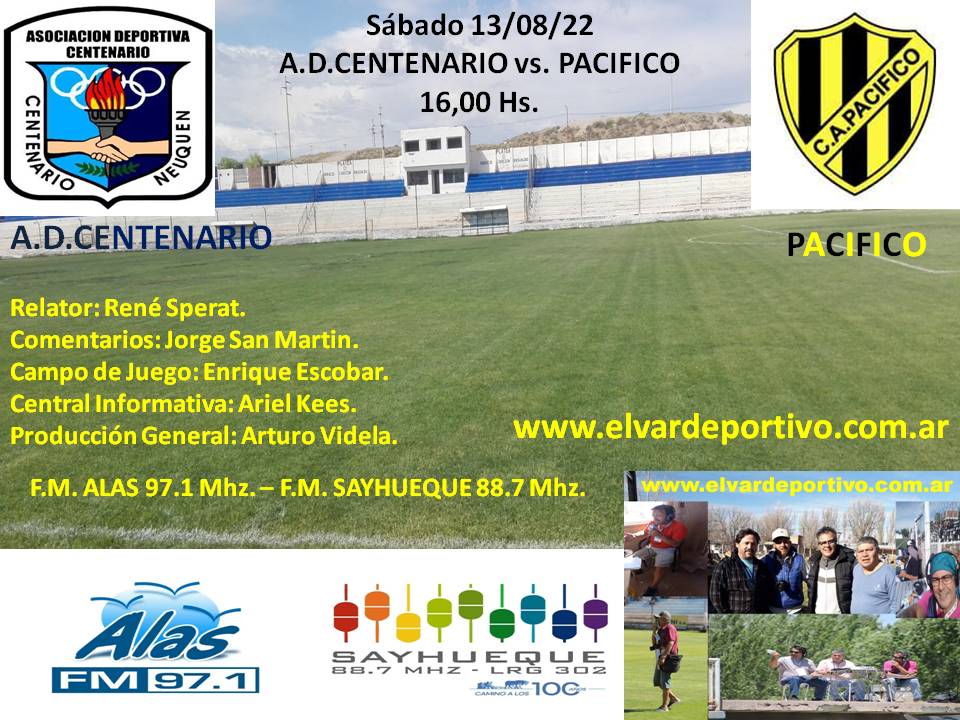 Por la fecha 4 de la Copa Neuquén, La Asociación Deportiva Centenario se enfrenta, de local a Pacifico Agosto 12, 2022 838